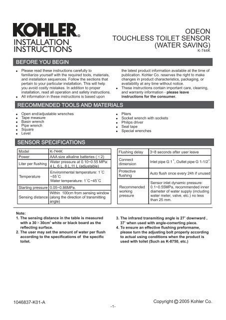 Reading Online installation guide kohler Epub Open Library